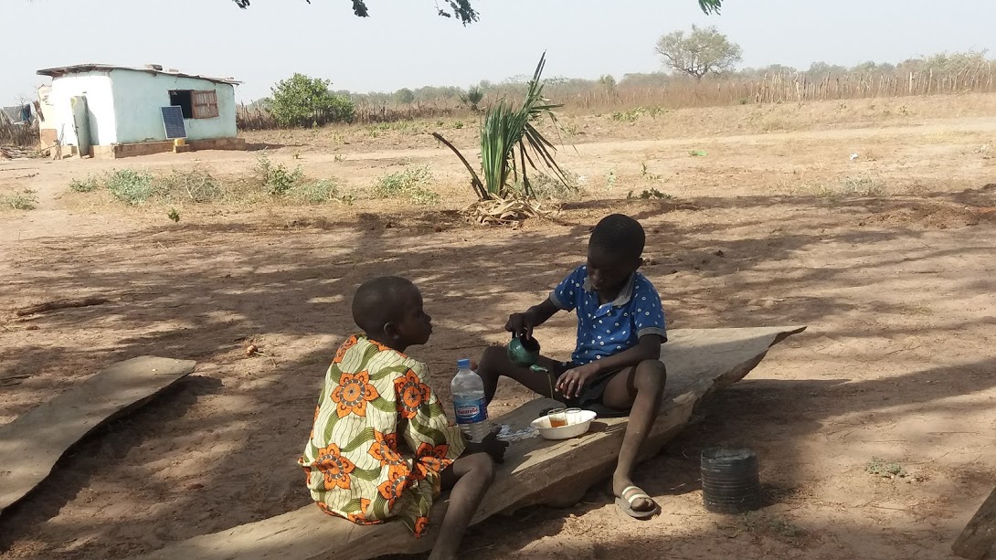 Kylässä eläminen ja oleminen muotoutui lyhyessä ajassa ihan normimeiningiksi. Aamulla heräsin, hain vesiastiani kaivolta täyteen hyvissä ajoin ennen ruuhkaa, söin aamiaisen joko kotona tai leirillä. Menimme yhdessä koululle ja pidimme pari leikintäytteistä oppituntia. Usein yksi tai useampi lapsista oli armottomasti myöhässä tunnilta, ja Vilma halusikin yrittää saada lapset ymmärtämään että myöhässä oleminen on hyväksyttävää vain jos on jokin ”oikea” syy. Eihän niitä meidän mielestämme ”oikeita” syitä ollut, mutta noin periaatteesta oli hyvä tuoda ilmoille ajatus siitä että jos opettaja on määrännyt koulun alkavaksi kello yhdeksän, niin silloin pitäisi olla paikalla kello yhdeksän. Paikalliset opettajatkaan eivät hirmuisesti asiasta pitäneet kiinni, joten voitte kuvitella kuinka hankalaa ja hidasta oli saada lapset ymmärtämään jutun juoni. Toisaalta, miksi asioiden pitäisi olla kuten meillä? Olemme eri kulttuureista ja se on kuitenkin hyvä pitää mielessä.